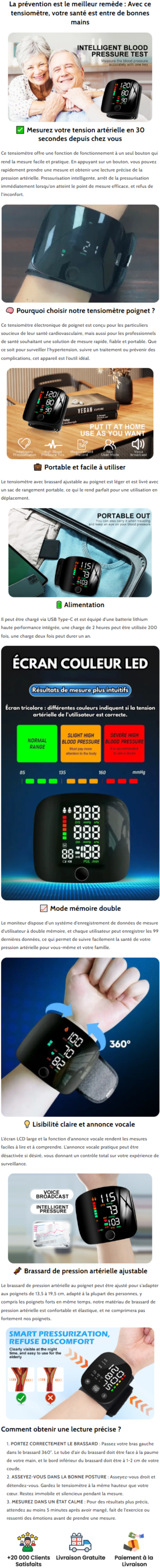 Tensiomètre Poignet Portable et Rechargeable Avec Écran LED : Précision Et Facilité D'utilisation